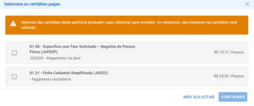 b) Spot: valor por pesquisa realizada (CNPJ ou CPF) – uso sob demanda.