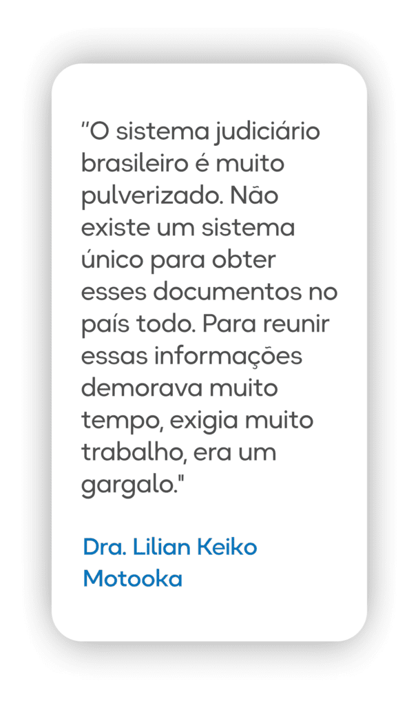 Sem um sistema unificado para acessar e obter esses documentos, a complexidade da tarefa aumentava. Cada localidade do país, seja estado ou município, apresenta seu próprio conjunto de regras quanto a tipos, formatos e modos de emissão de documentos, o que pode gerar muitas particularidades e dificuldades para quem precisa obtê-los. Essa enorme diversidade por vezes gerava um descompasso de expectativas, inclusive alterações no fluxo dos negócios, o que exigia empenho redobrado da equipe.