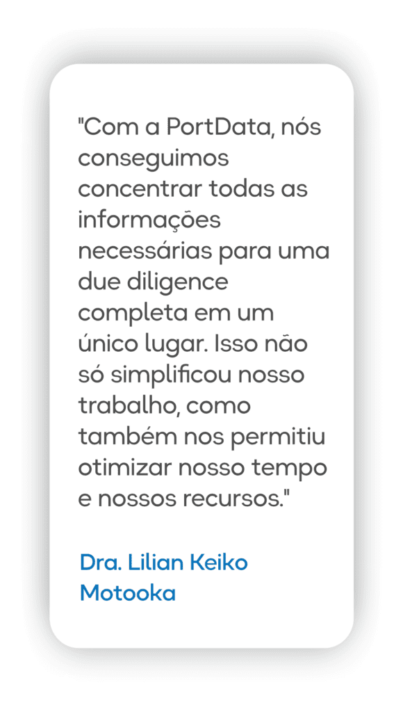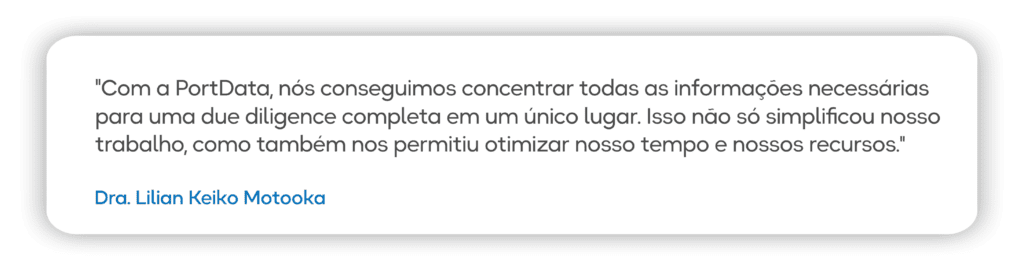 A PortData surgiu no momento certo, apresentando uma solução inovadora que poderia simplificar o processo de Due Diligence. A proposta era atraente: uma tecnologia capaz de gerar a obtenção de documentos de maneira mais rápida, centralizada, online. No entanto, o fator fundamental que levou à decisão da contratação foi a vasta cobertura de documentos e certidões, ponto que fez a PortData destacar-se definitivamente.